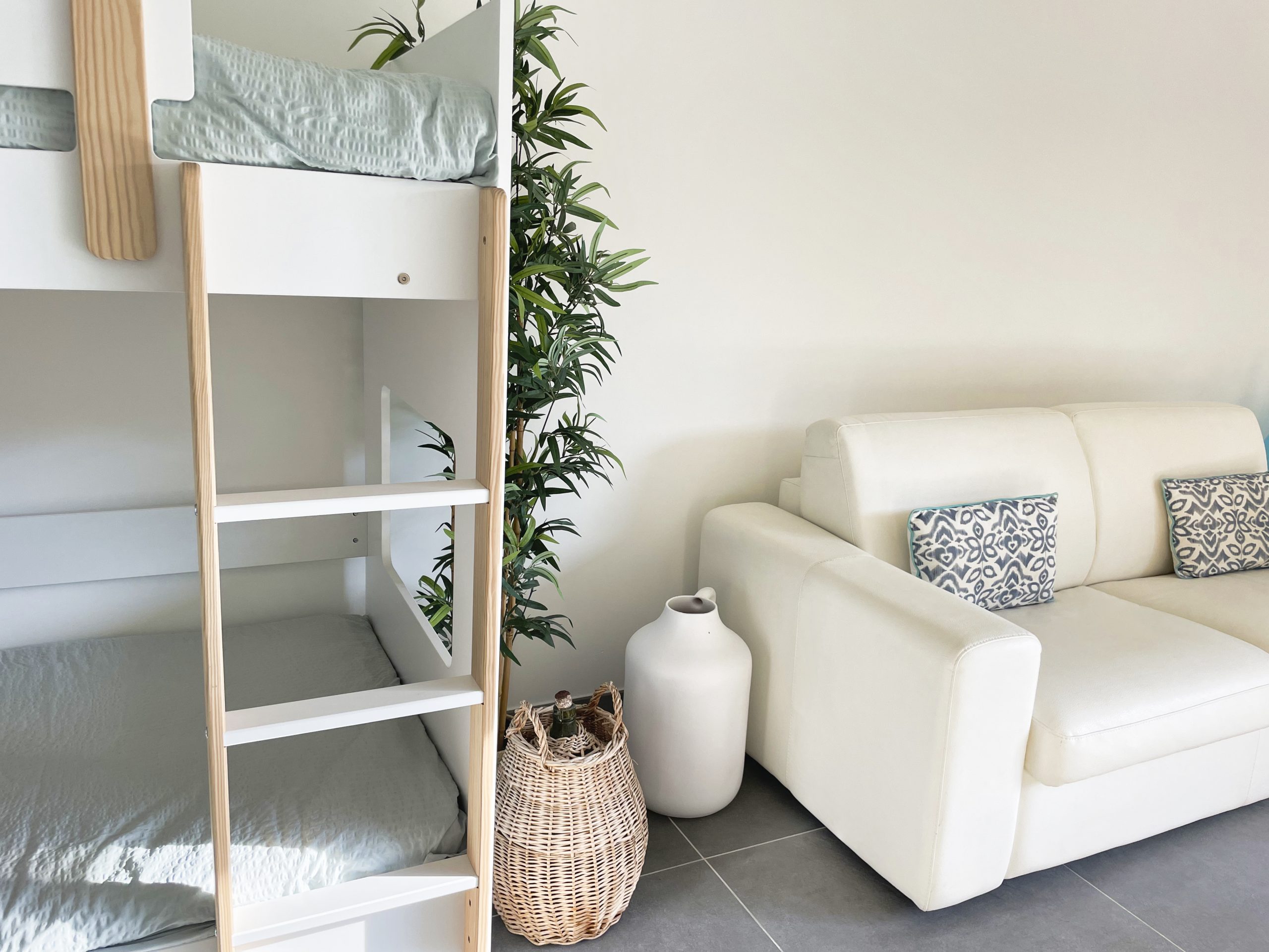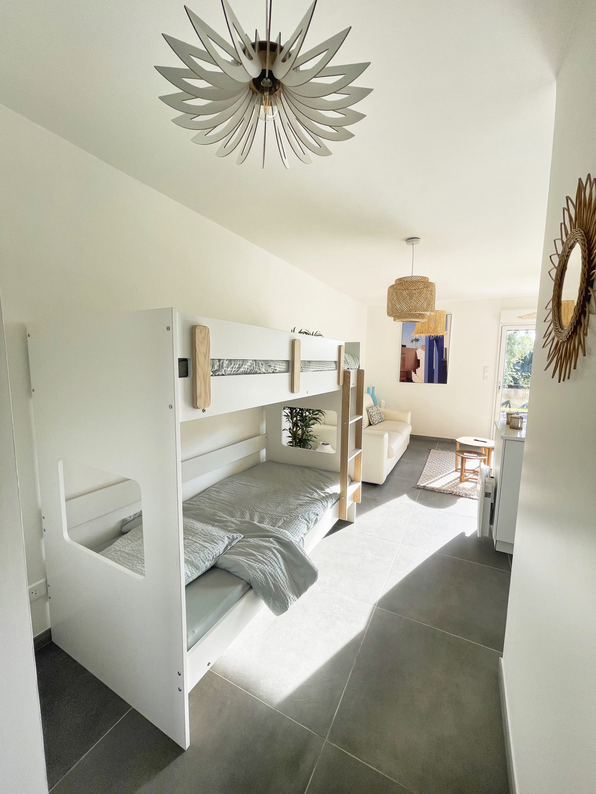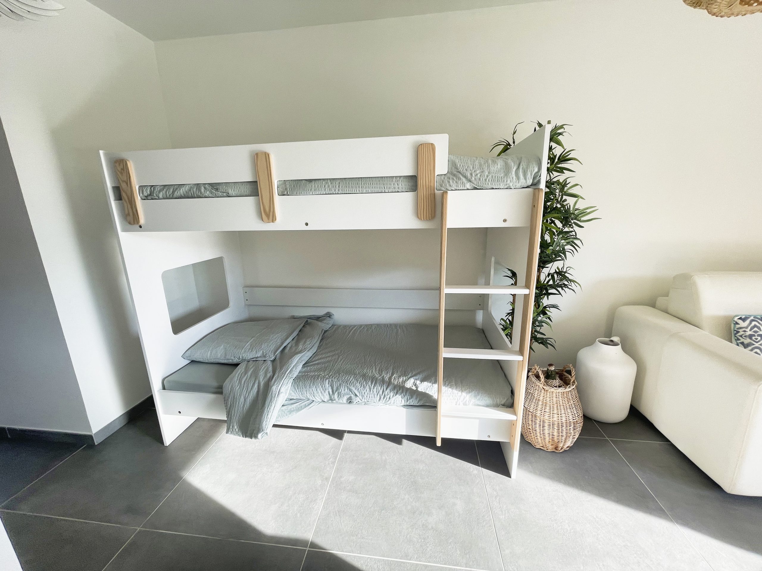 - Pièce de vie : 1 lit superposés (2 couchages) de 90x190cm